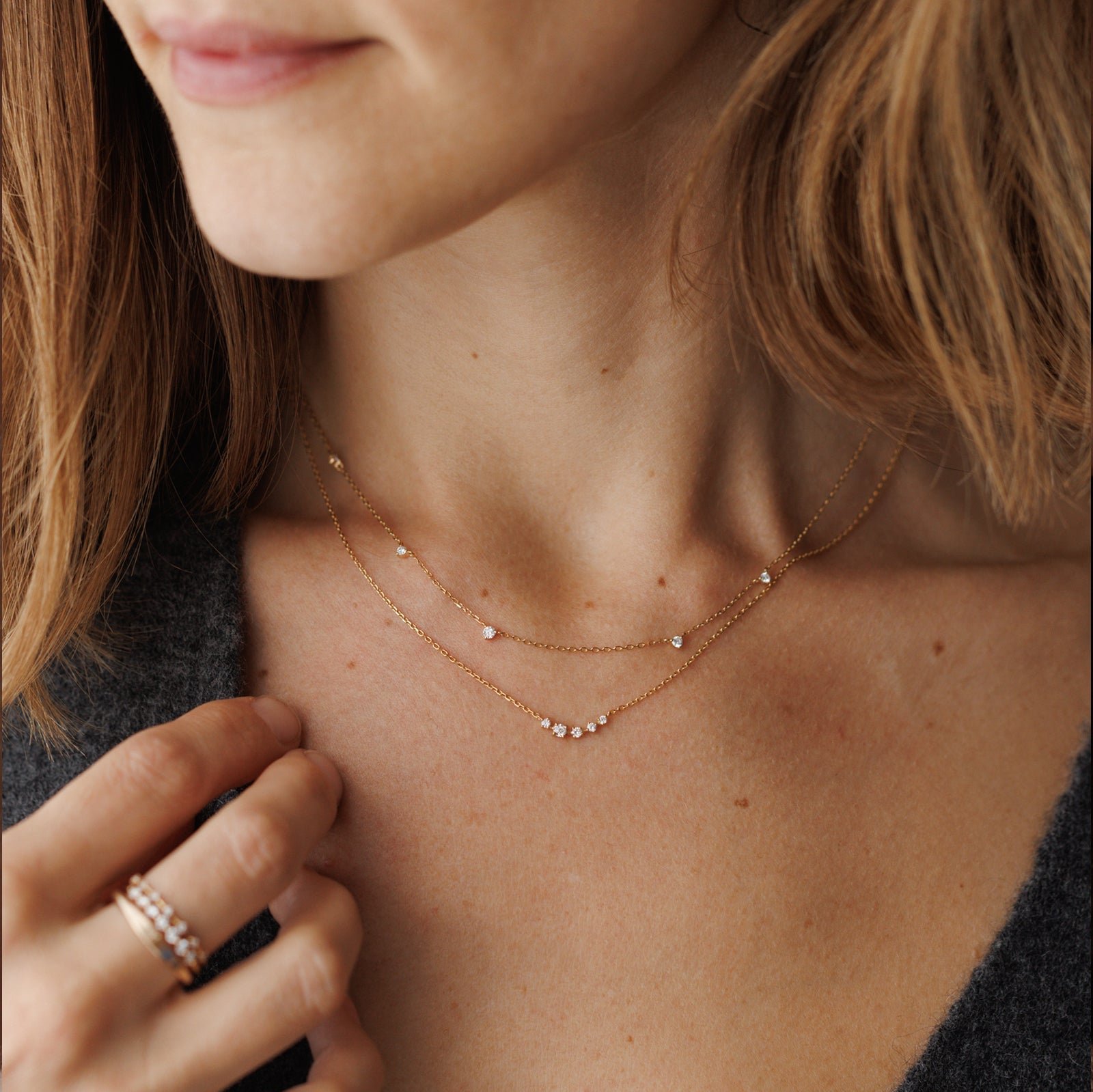 An everyday necklace for the dreamer, like stars scattered across your collarbone.