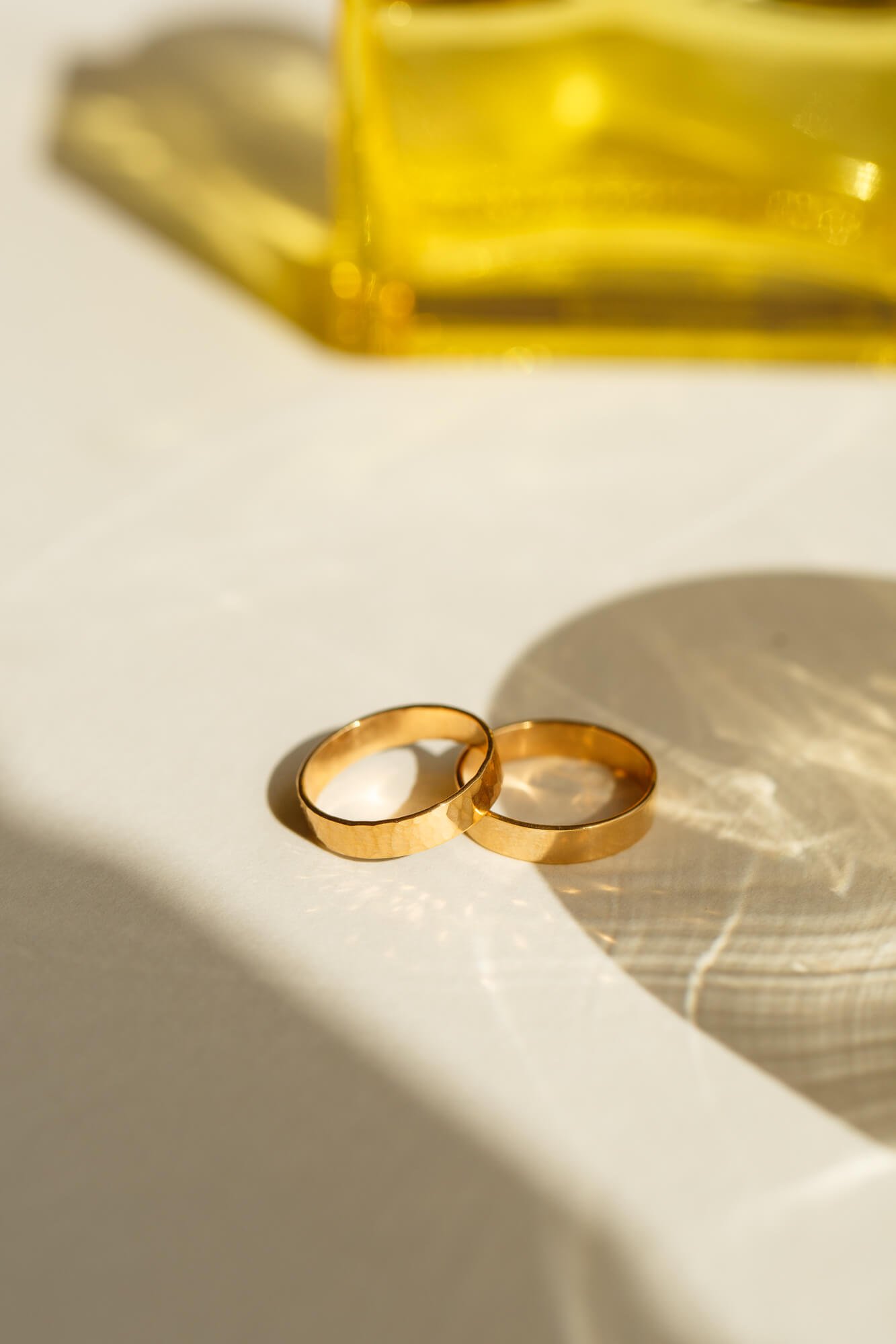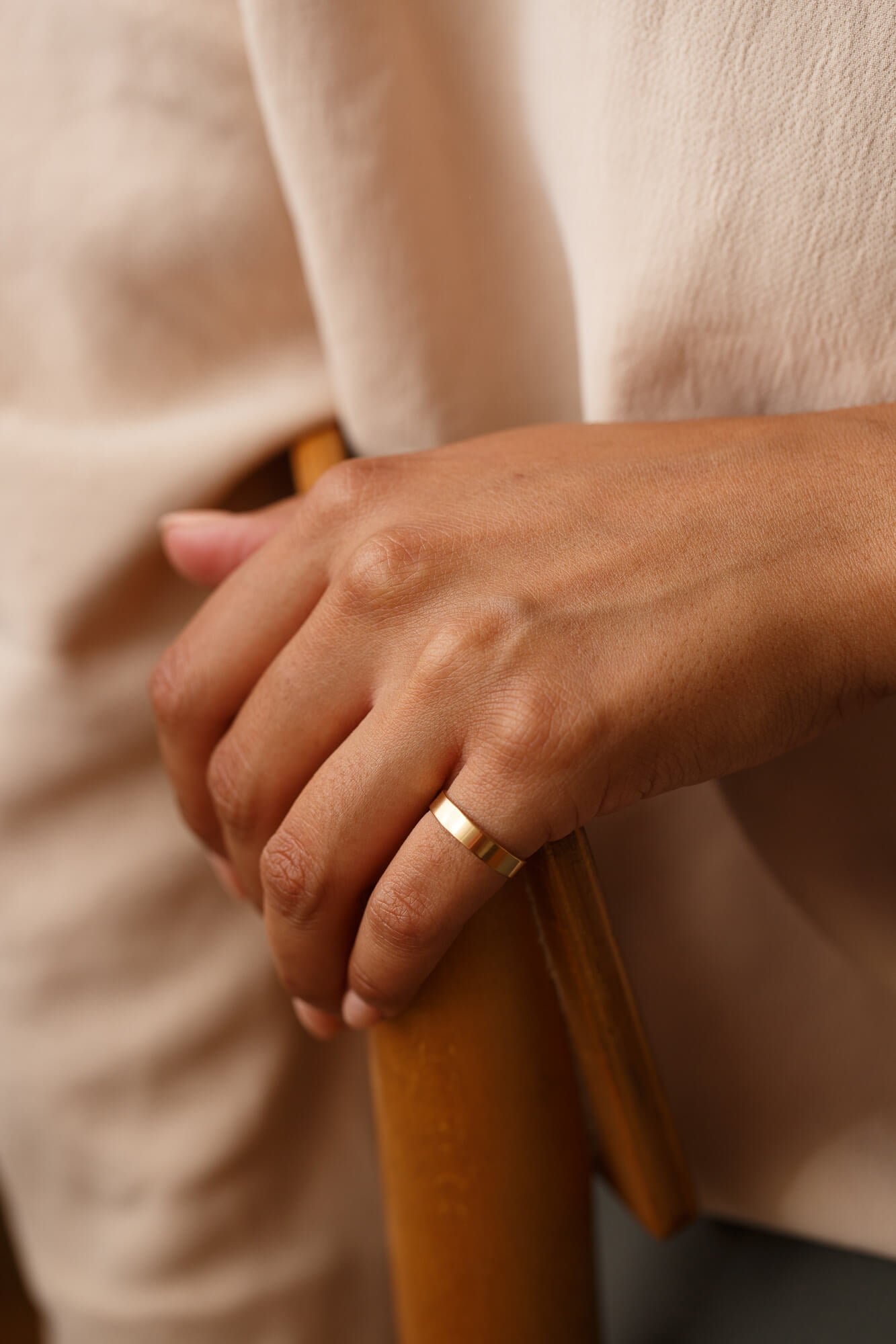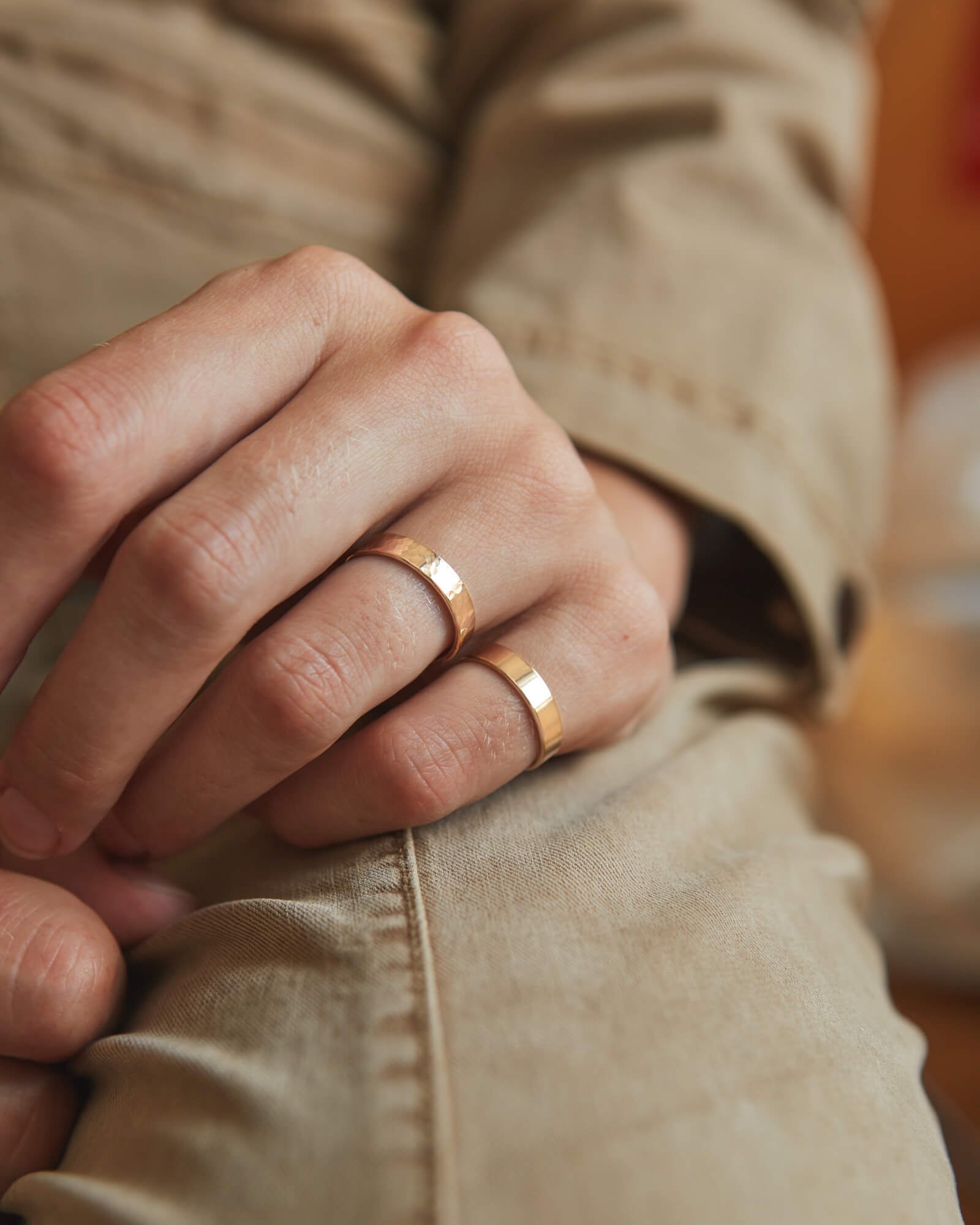 Ring sizing tip: thicker bands (like these!) tend to fit tighter than daintier stacking rings since they cover more space on your finger. You might need a half size larger for a comfy fit.