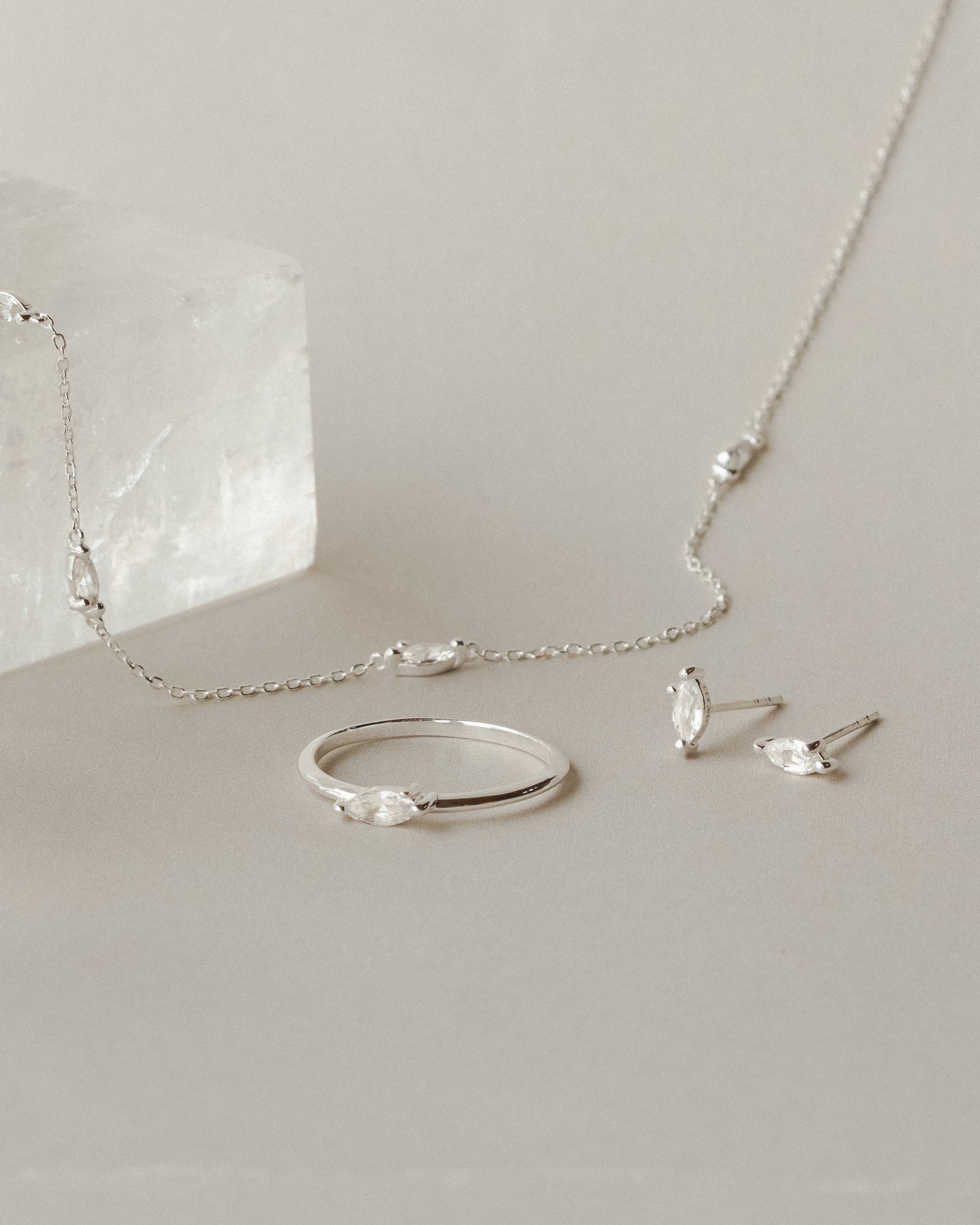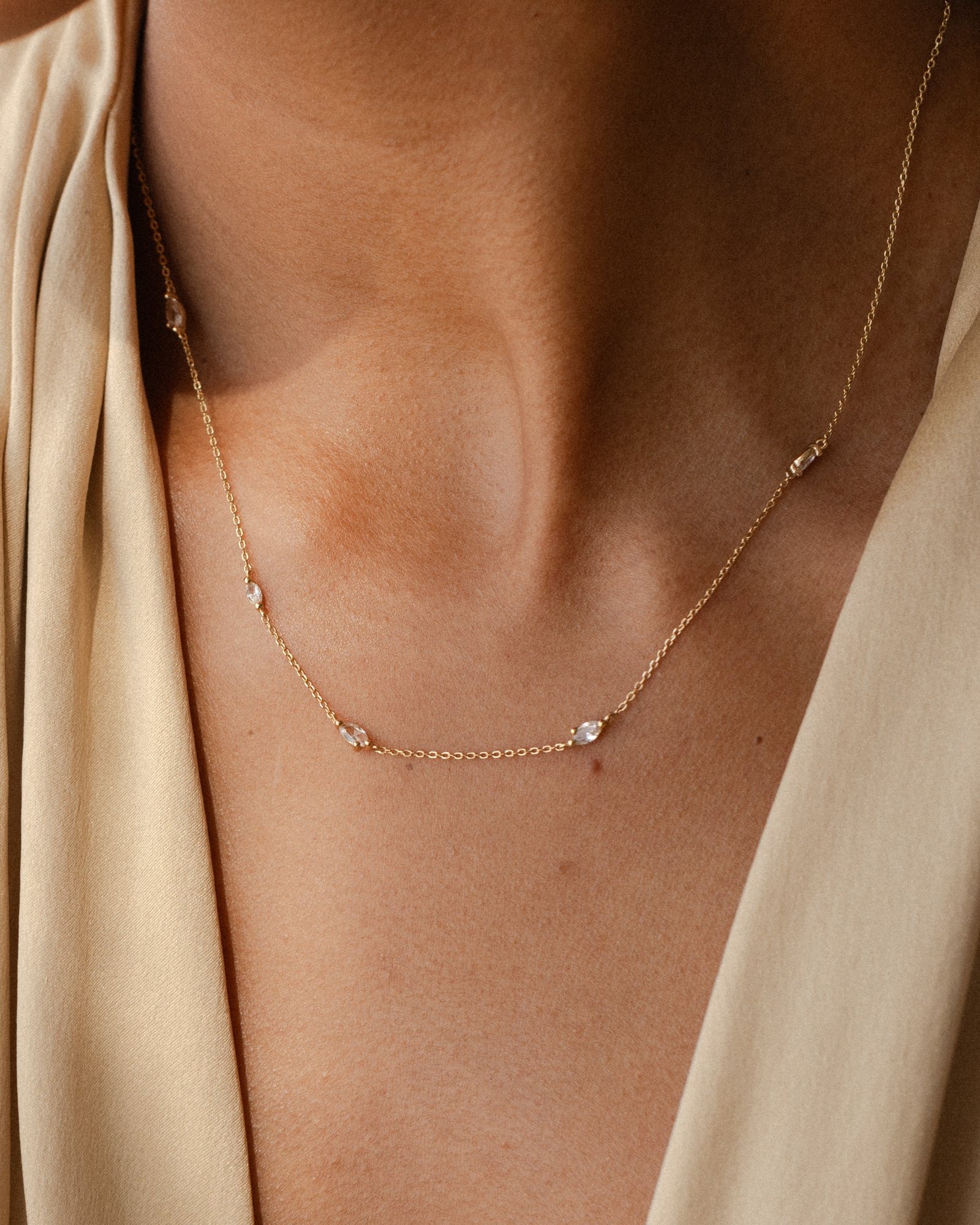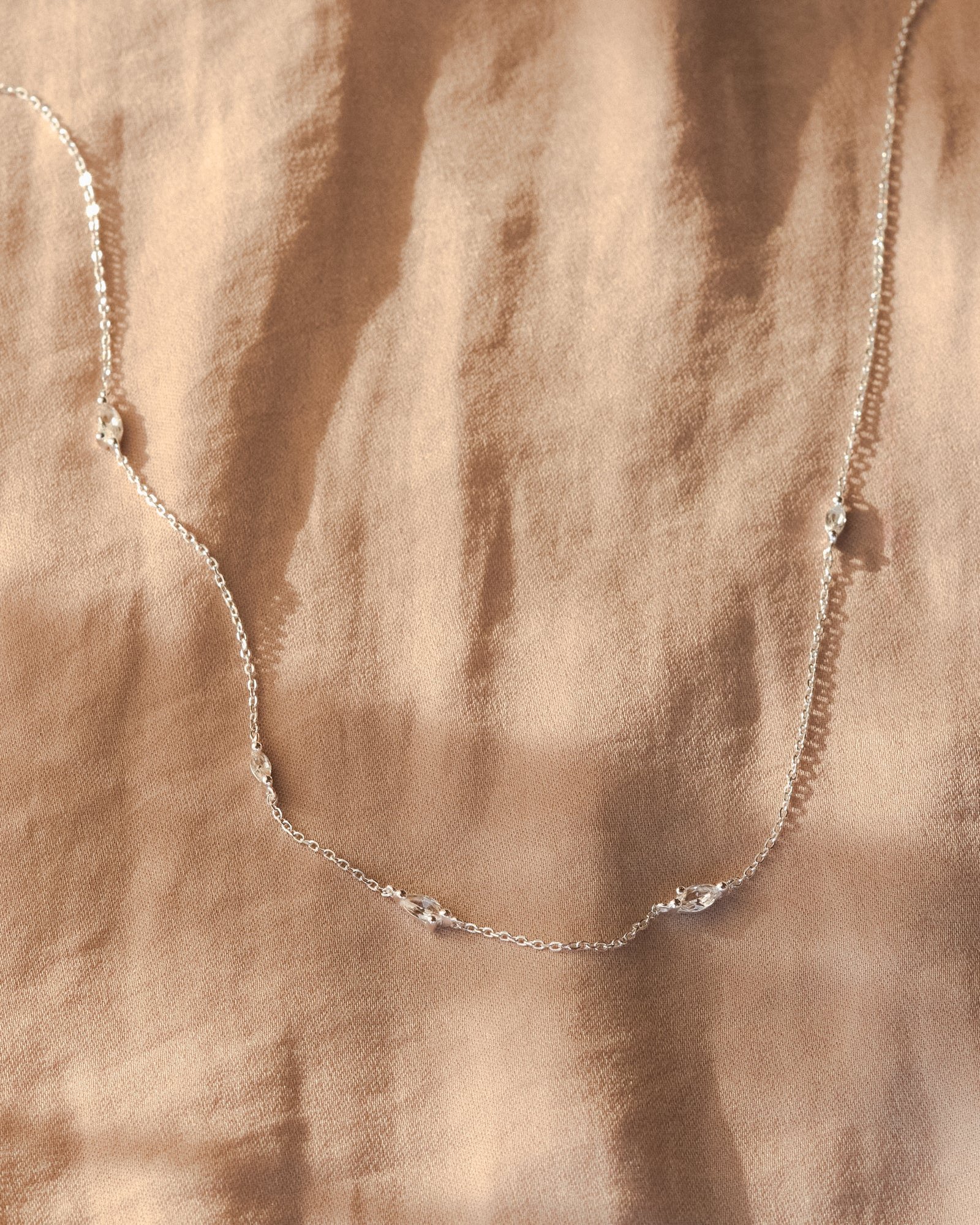 Punctuated with light-catching gemstone leaves placed along our sparkliest chain. A friend to pendant necklaces and bold chains alike. Crafted in vermeil, sterling silver or solid gold with genuine, lab-grown white sapphires.