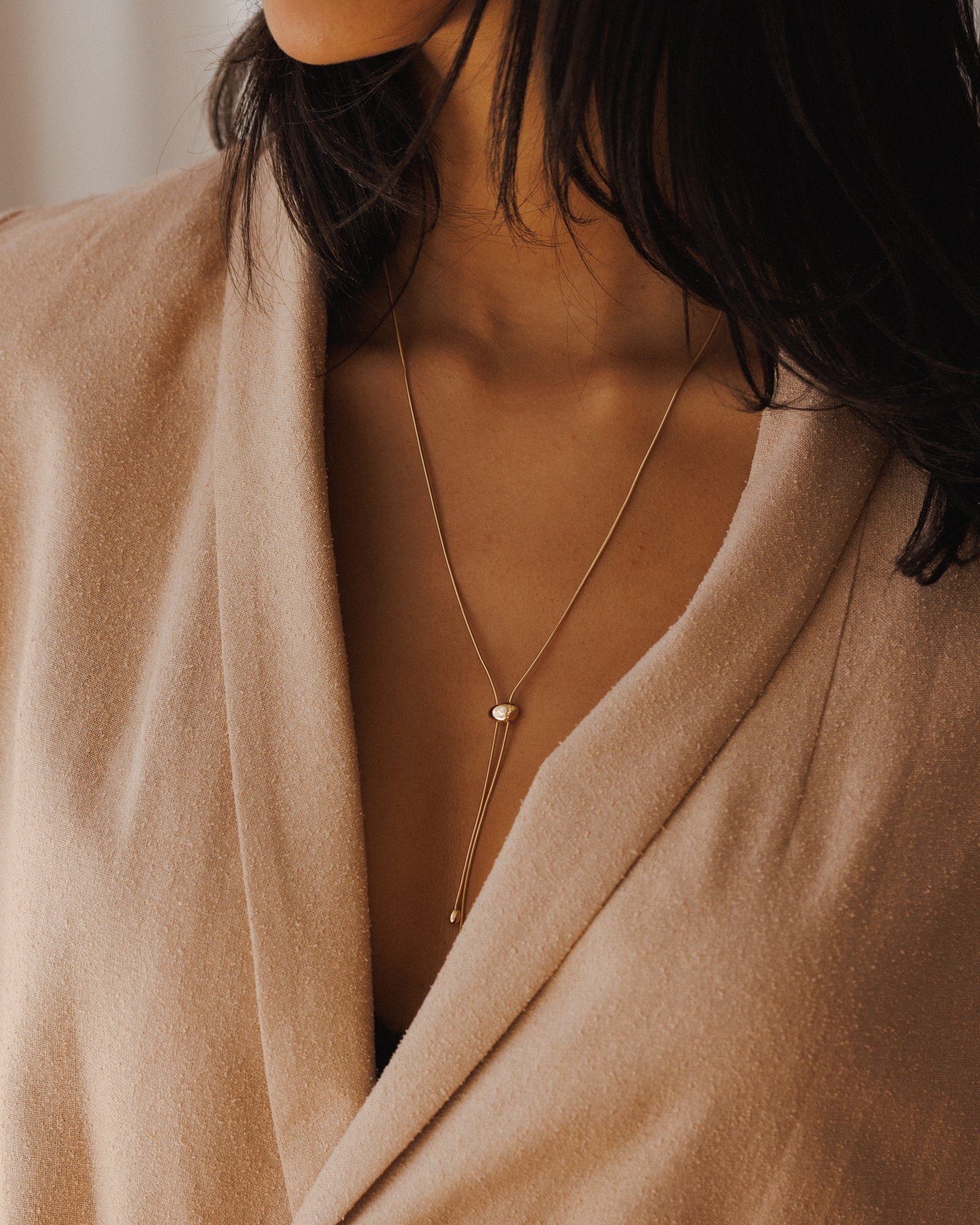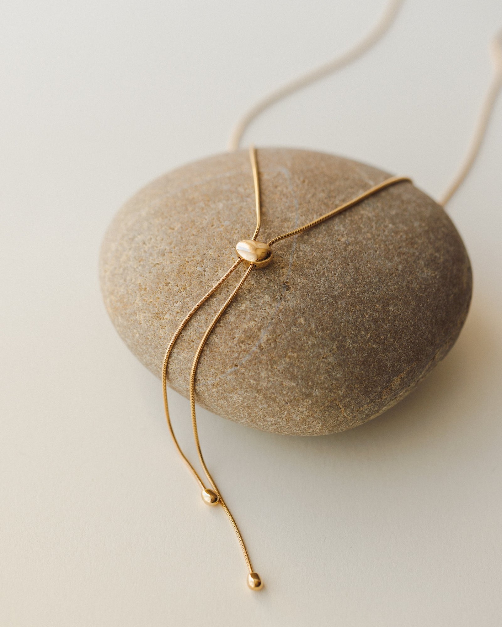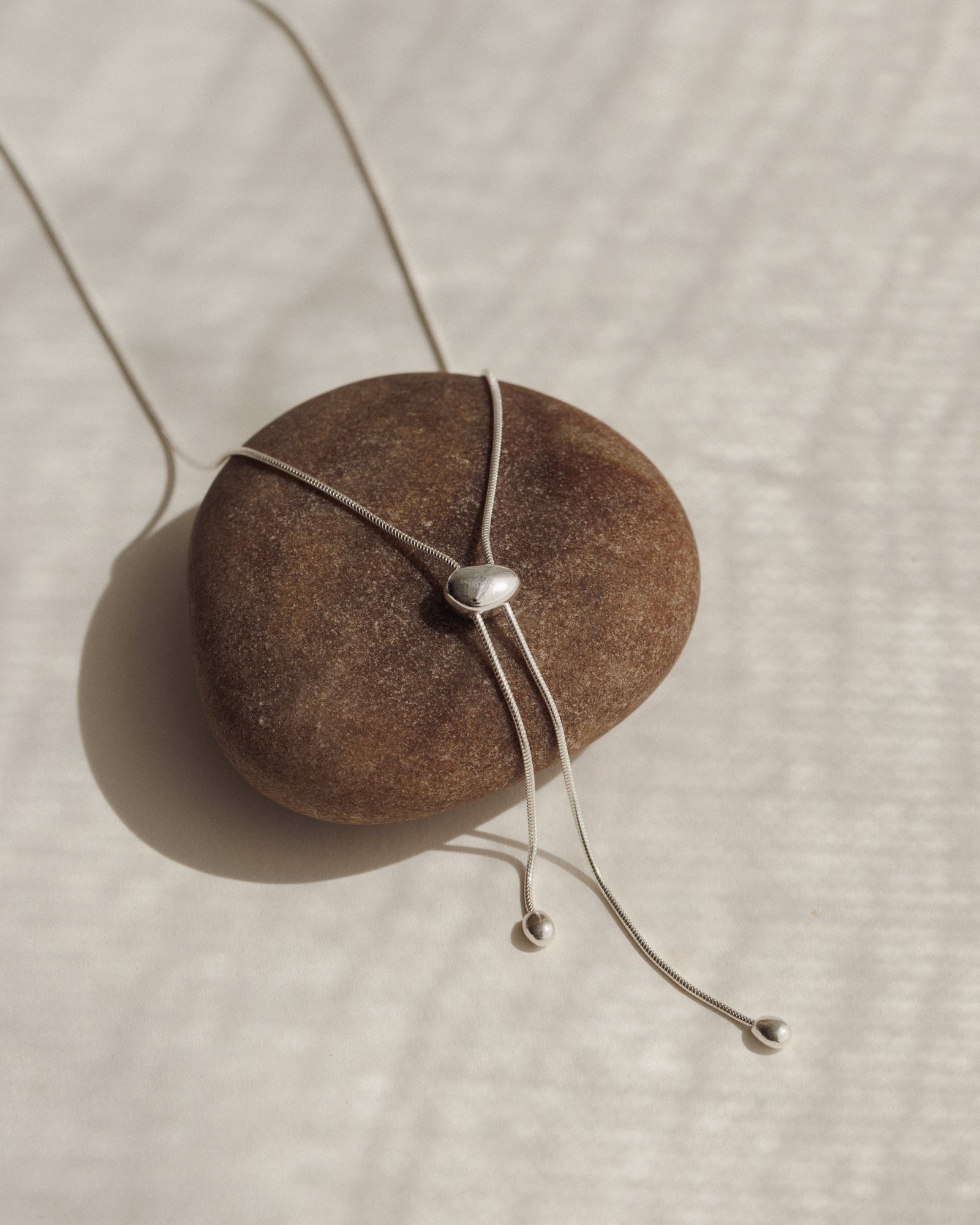 Our bestselling worry stone, now in sleek bolo form. Made with a sculptural shape, soft indentation and calming aura to settle your mind and ground your look. Length is fully adjustable to style a million ways.